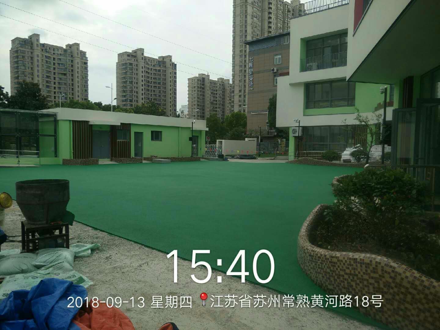 ?、啪郯滨ニ苣z材料的施工過程中怕水、膠漿在初步固化前碰到一滴水珠就會產(chǎn)生一個大的氣泡,因此施工人員在高溫條件下作業(yè)要準備毛巾擦汗。鋪膠面時一定掌握天氣情況并要做好防止突降陣雨的應急措施。鋪膠時間要避開早晨大氣中和地面濕度較大的時候,即使在天氣晴朗的正常工作日,一般好在上午九點以后正式鋪設。